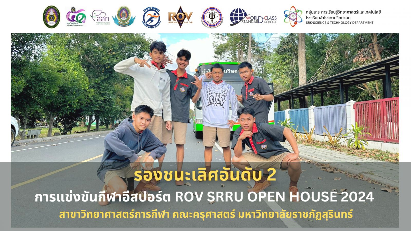 กลุ่มสาระการเรียนรู้วิทยาศาสตร์และเทคโนโลยี โรงเรียนสำโรงทาบวิทยาคม ขอแสดงความยินดีกับทีมนักกีฬา ที่ได้รับ "รางวัลรองชนะเลิศอันดับ 2" ในรายการแข่งขันกีฬาอิเล็กทรอนิกส์ (E-Sport) ROV จัดโดยสาขาวิทยาศาสตร์การกีฬา คณะครุศาสตร์ มหาวิทยาลัยราชภัฏสุรินทร์ ในงาน SRRU OPEN HOUSE 2024 ก้าวไปข้างหน้าอย่างมั่นใจ กับมหาวิทยาลัยราชภัฏสุรินทร์ ประจำปี 2566 ทีมผู้เข้าแข่งขัน ประกอบด้วย